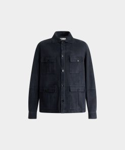 Bally Men’s Saharan Jacket In Navy Blue Suede | Blue