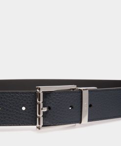 Adjustable and reversible, this Astory 35mm belt is crafted from navy blue and black leather. The metal buckle in polished palladium-hue metal ensures its versatility.