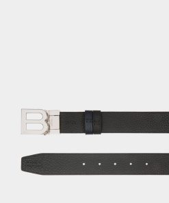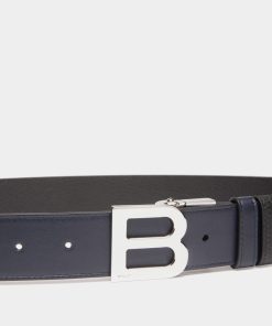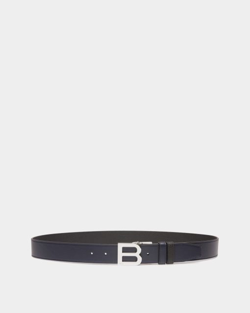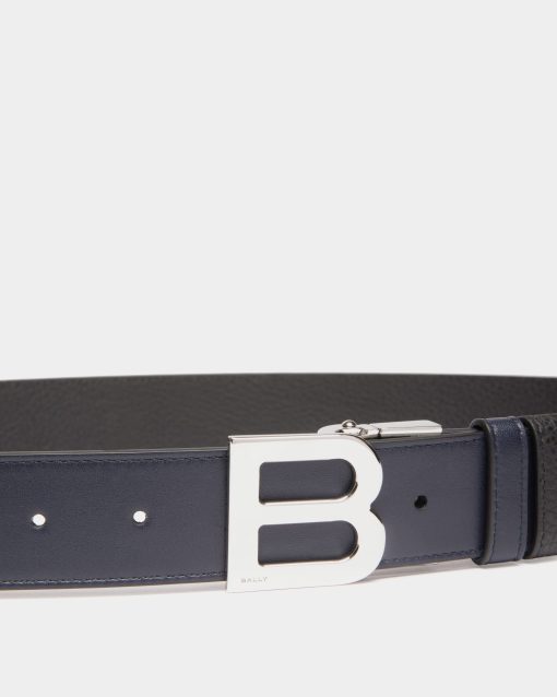 Bally Men’s B Logo 35mm Reversible And Adjustable Belt In Navy Blue And Black Leather | Multicolor