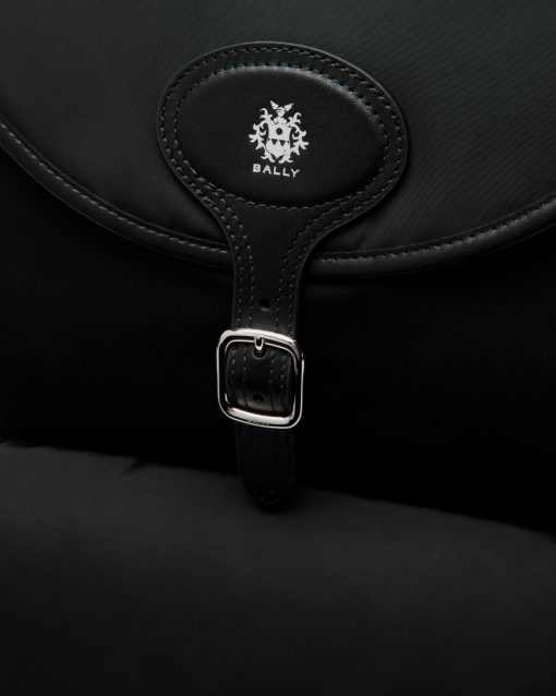 This B-Light backpack unites an essential design in robust black nylon canvas with tonal leather trim and palladium-hue hardware. A Bally Crest embellishes the top flap.