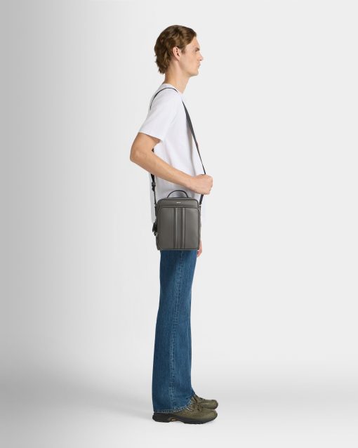 Bally Men’s Mythos Crossbody Bag In Grey Recycled Leather | Grey
