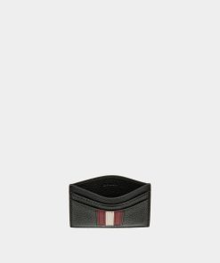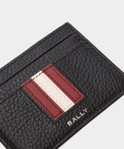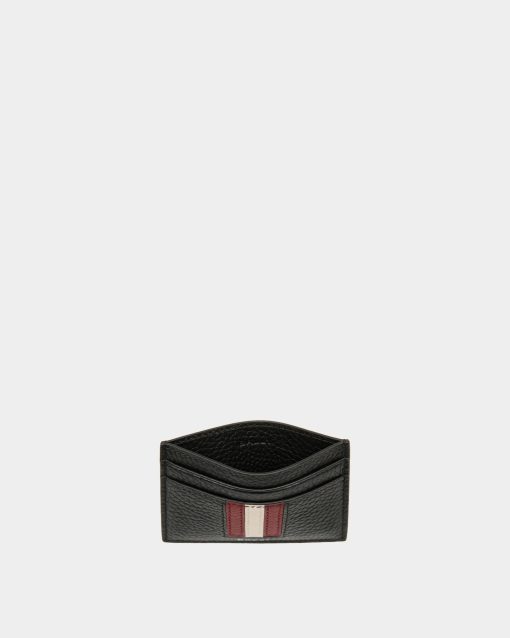 Bally Men’s Ribbon Card Holder In Black Grained Leather | Black