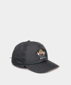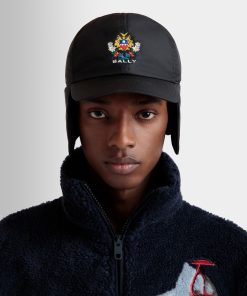Bally Men’s Winter Capsule Aviator Hat With Alpine Flowers In Black Recycled Nylon | Black