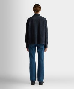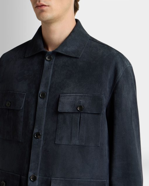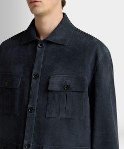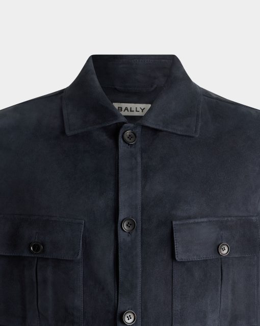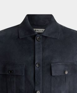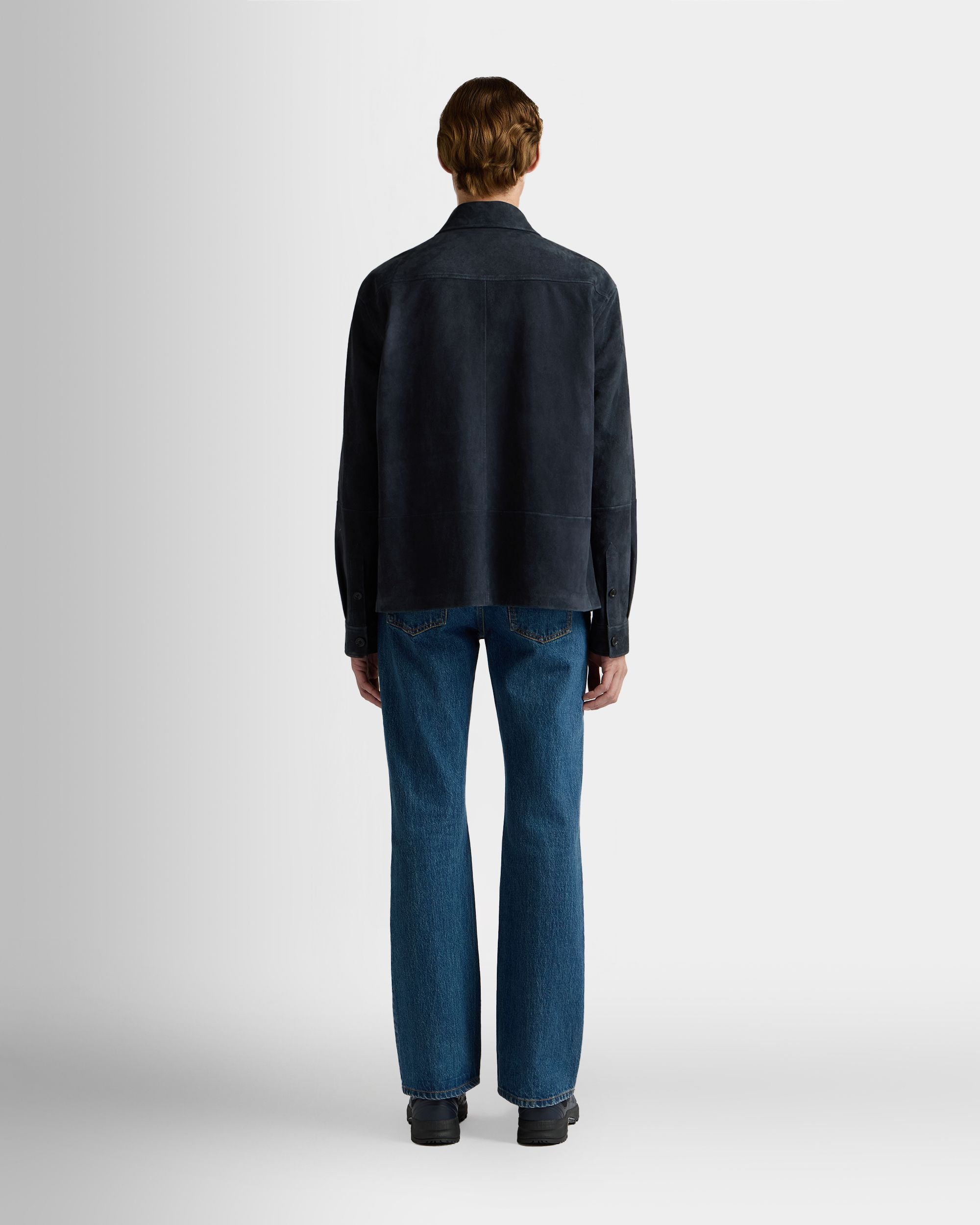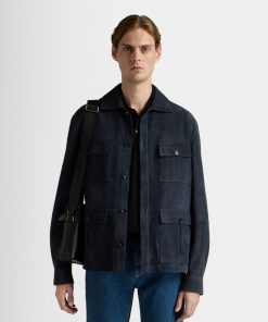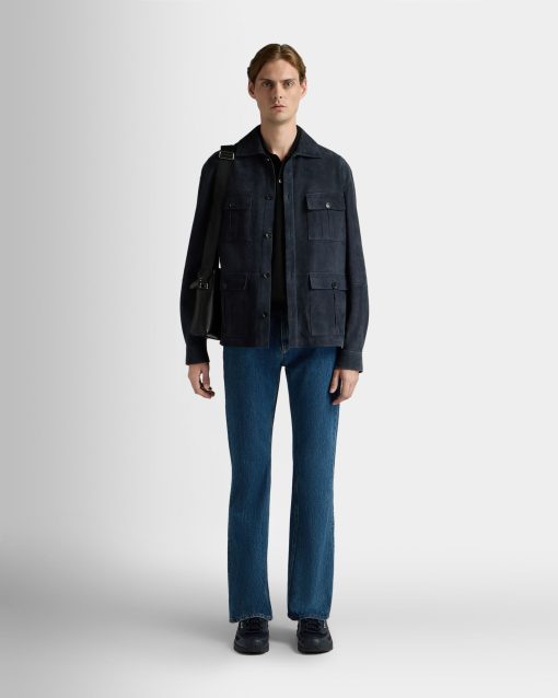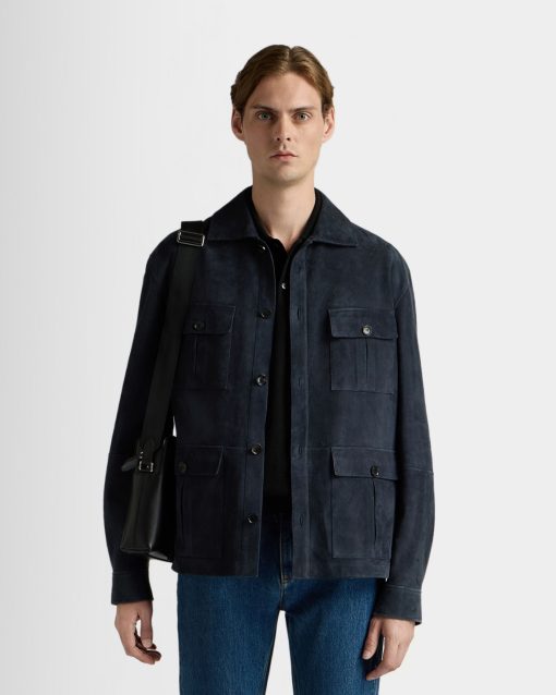 This safari jacket is crafted from soft lambskin suede in blue. The velvety handle, matte look and impeccable drape highlight Bally’s attention to detail. Four bellows pockets finish the front in a nod to the utilitarian inspiration of this versatile style.