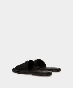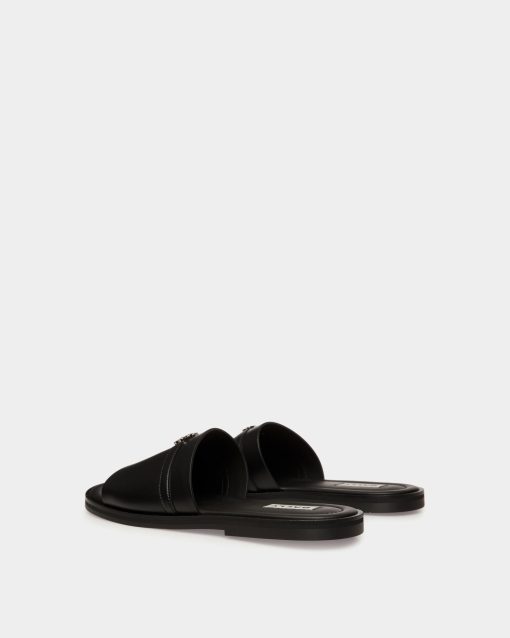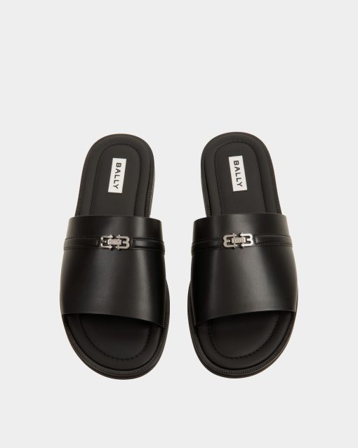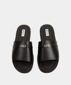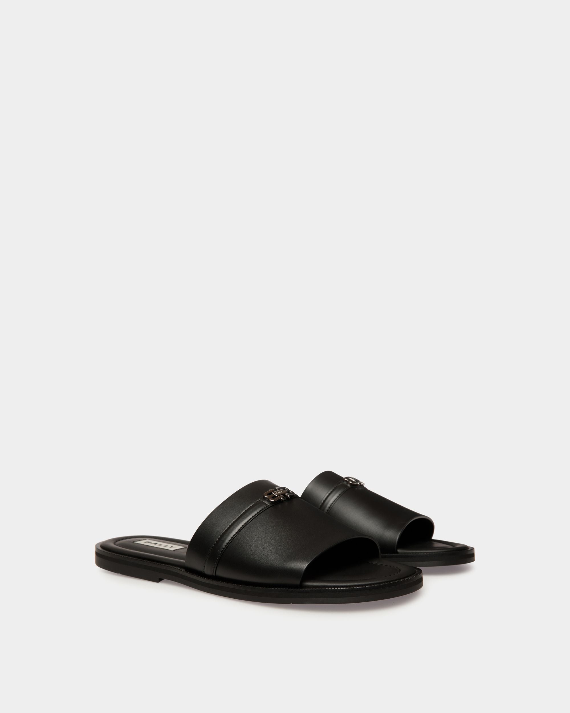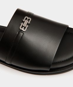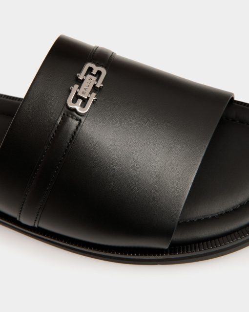 The Glide sandal in black features a single-strap leather upper and a durable rubber sole. Bally B-Twice hardware adds an iconic finish.