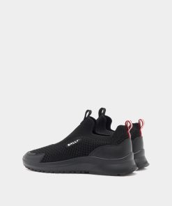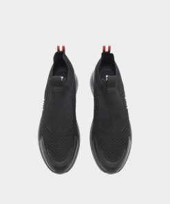 Made for comfort, this Outline sneaker boasts a knit-effect black nylon upper and a lightweight rubber sole with high-grip tread. Two pull tabs ensure the practicality of this pull-on style.