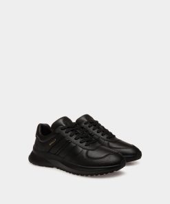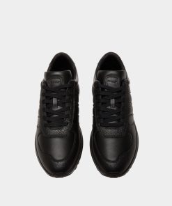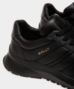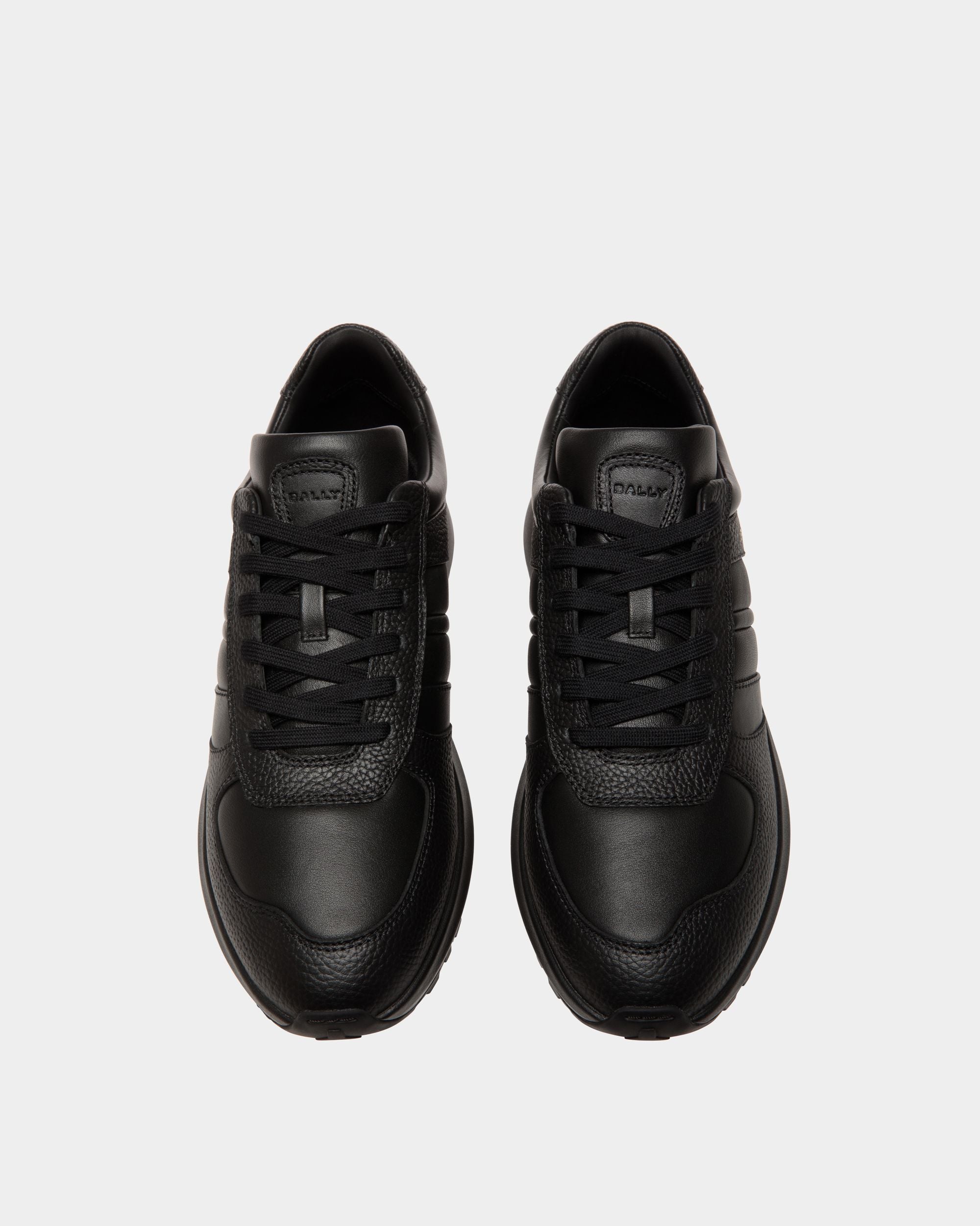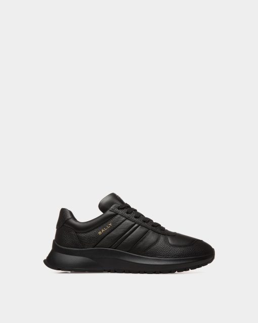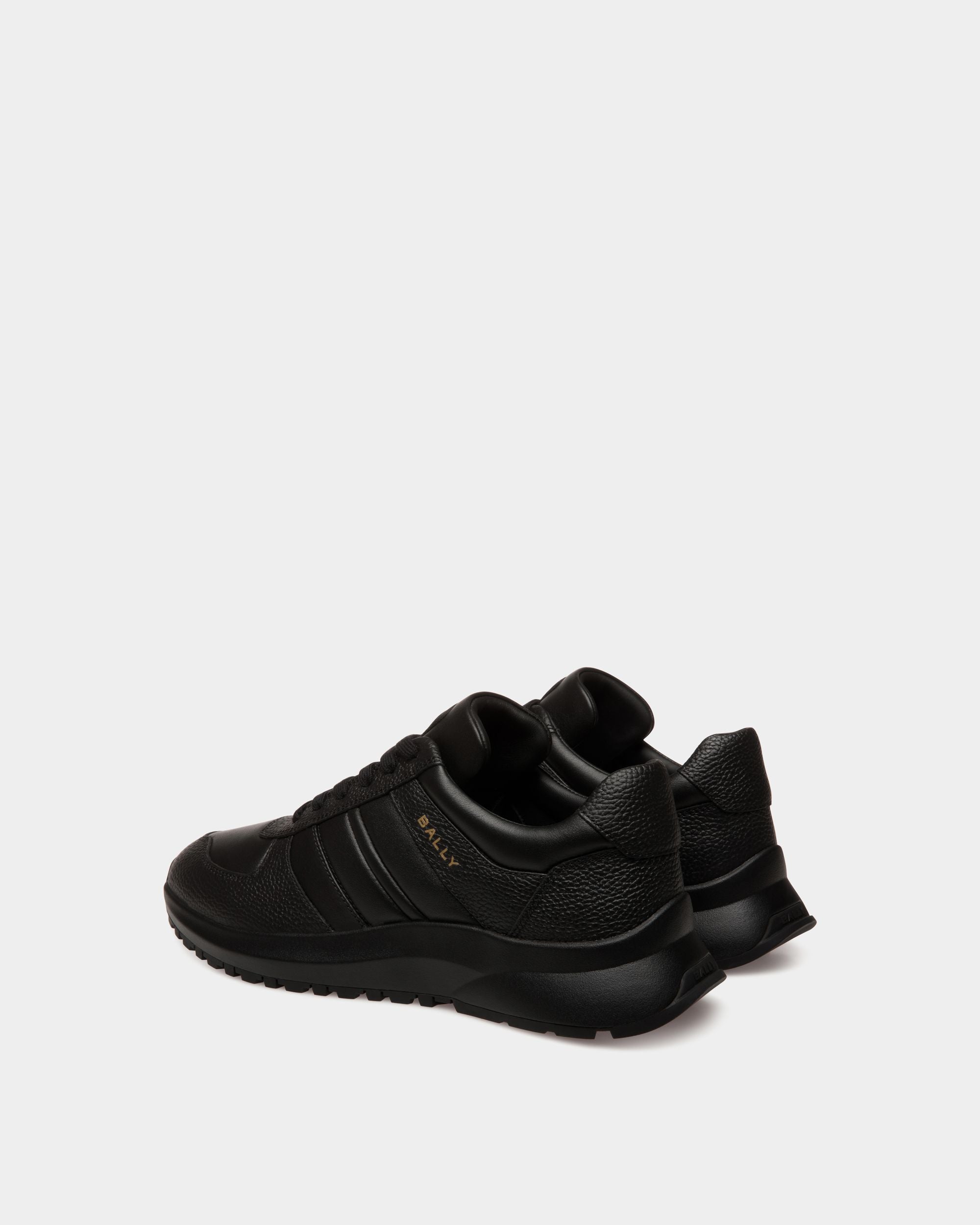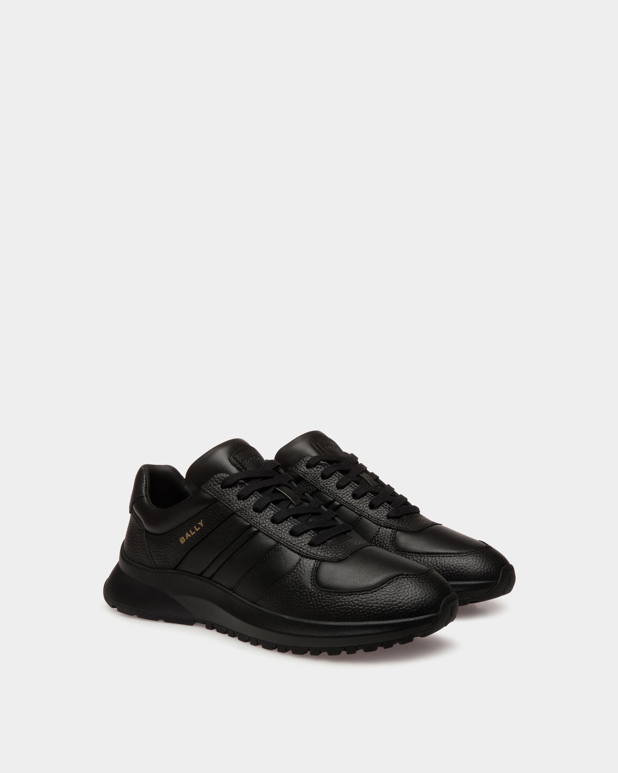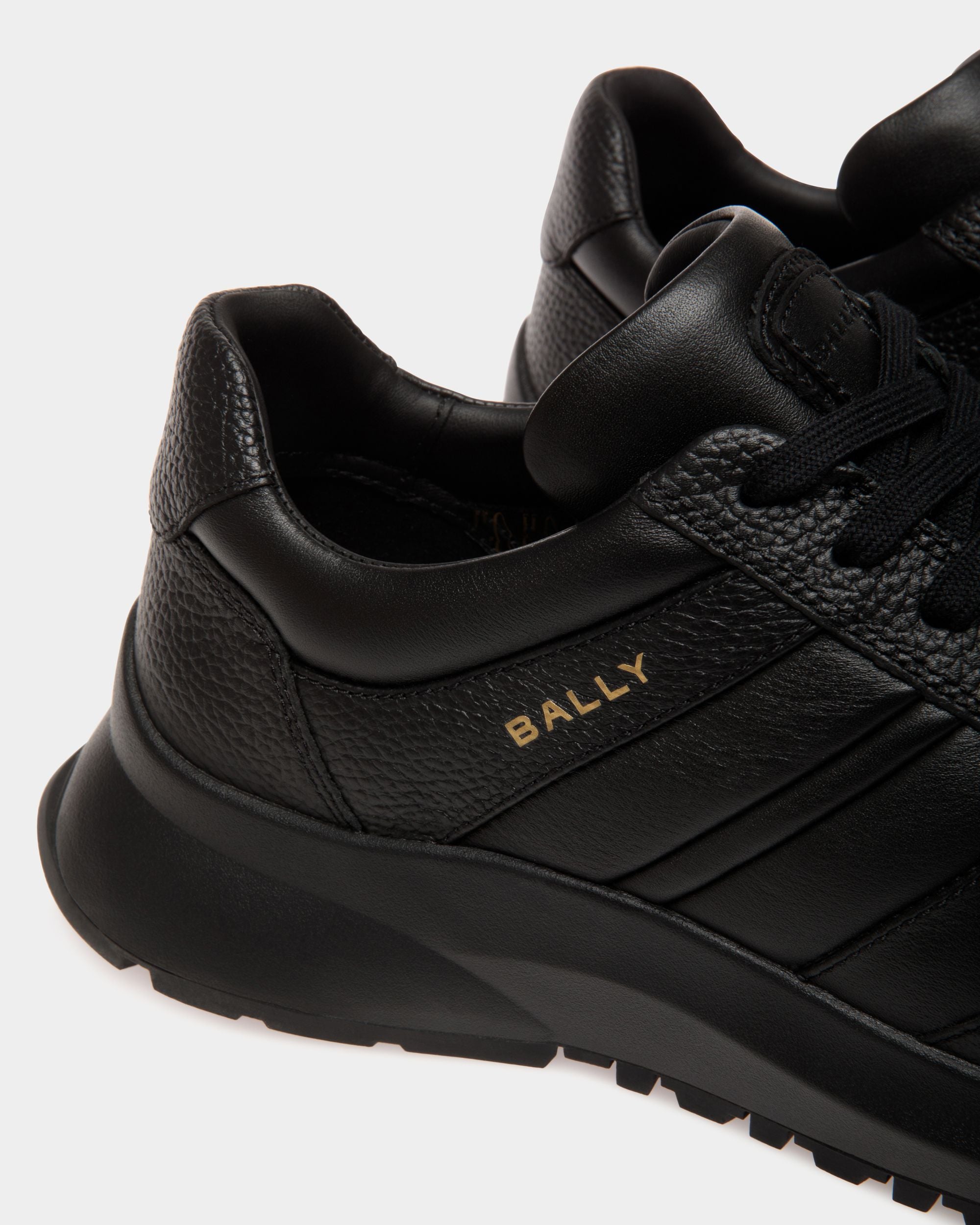 This Outline sneaker unites grained and smooth leather with a lightweight running-inspired sole, all in black. A gold-tone foil Bally logo and a leather Ribbon signifier create an iconic finish.