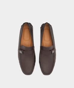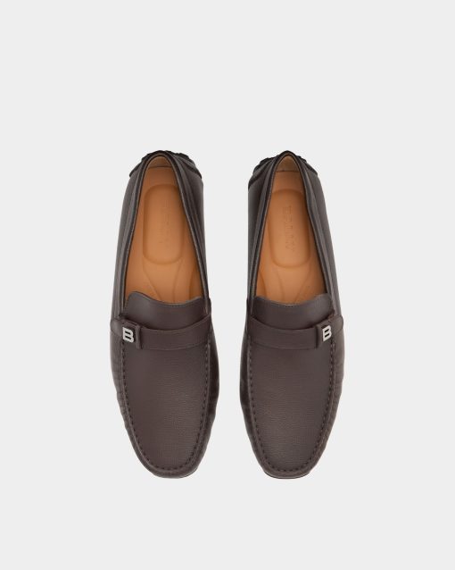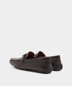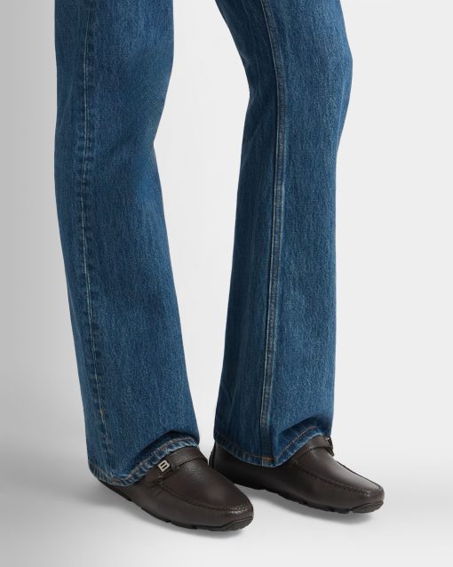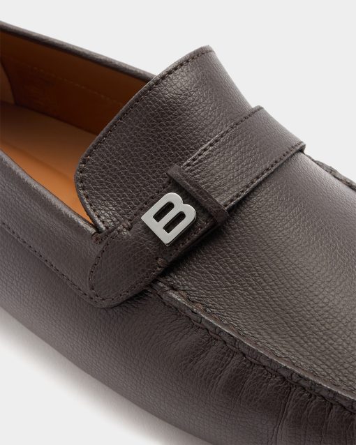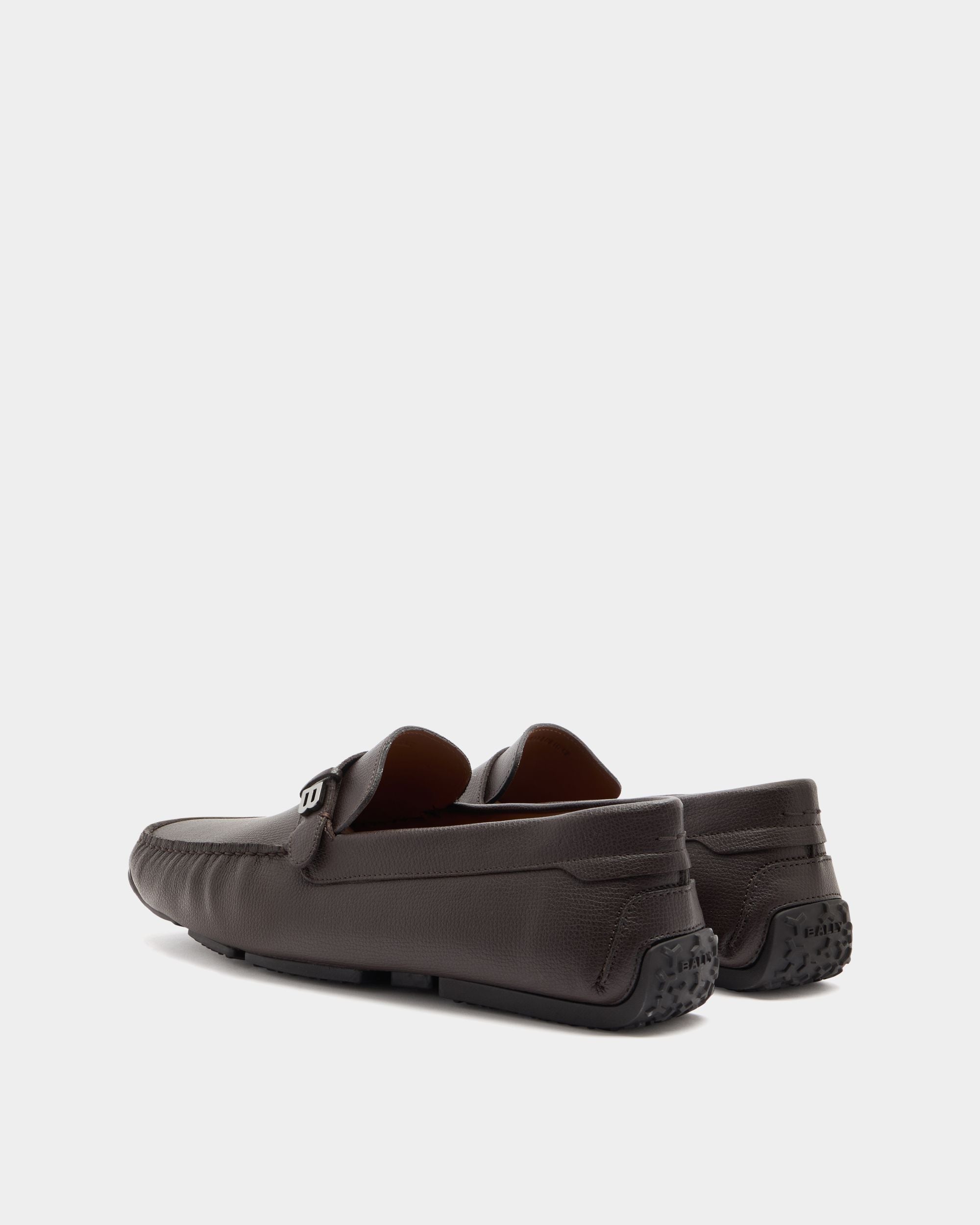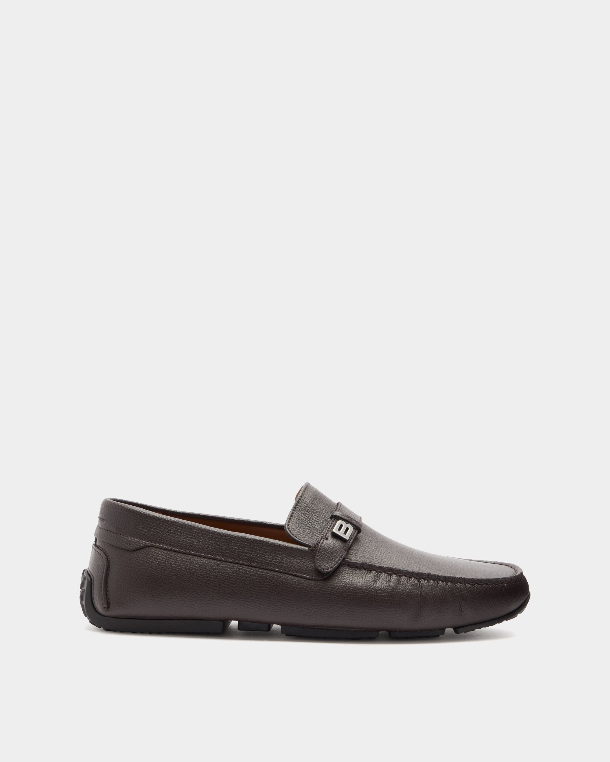 This Pilot driver in grained Ebano leather unites a classic driving shoe silhouette with the step-in comfort of moccasin construction. The split rubber sole extends to the toe and heel for added protection.
