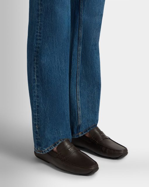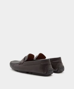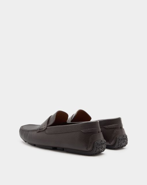 This Pilot driver in Ebano grained calfskin is enriched by the Bally logo in metal at the center of the saddle strap, adding a signature touch to its timeless design. Tubular construction and a split rubber sole deliver flexibility and comfort.
