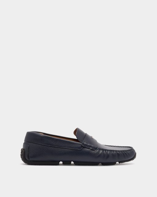 This Pilot driver in navy blue leather showcases the timeless craftsmanship of Bally. Moccasin construction, a split rubber sole and a Zahogel foam insole offer step-in comfort and flexibility.