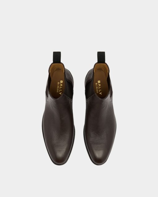 Bally Men’s Shoes Scribe Un Bootie In Brown Grained Leather | Brown
