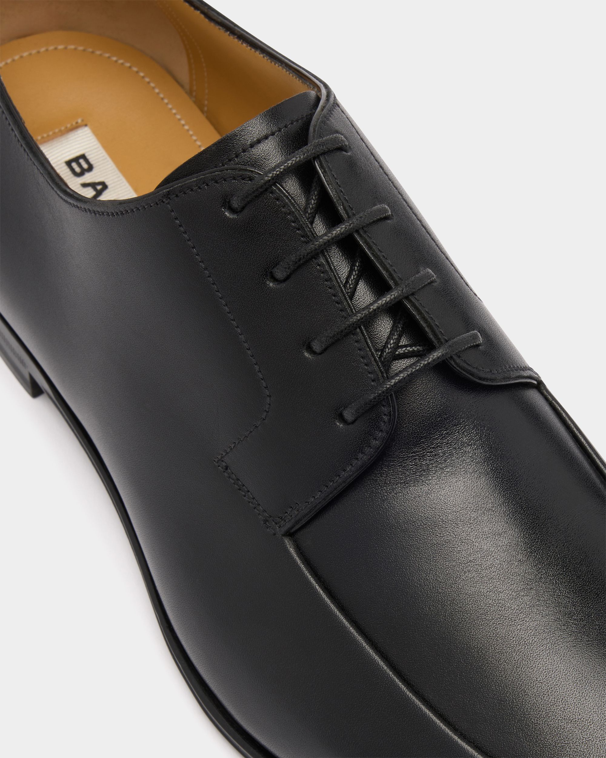 This timeless Westminster derby in black calfskin is a masterpiece of Bally craftsmanship and fine leatherworking. The simple, almost seamless upper is united with the leather sole via Blake Flex construction for flexibility and an elegant silhouette.