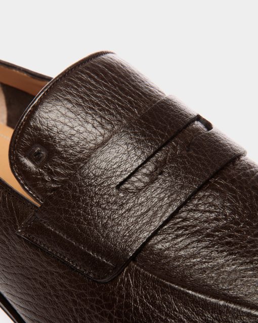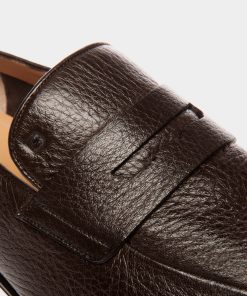 The upper of this Westminster loafer is crafted from grained deer leather and trimmed by a penny saddle strap. Blake construction ensures the integrity and comfort of this almond-toe style, combined with rubber inserts on the leather sole.