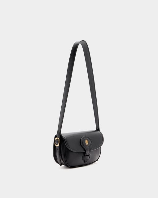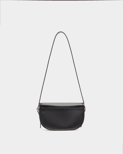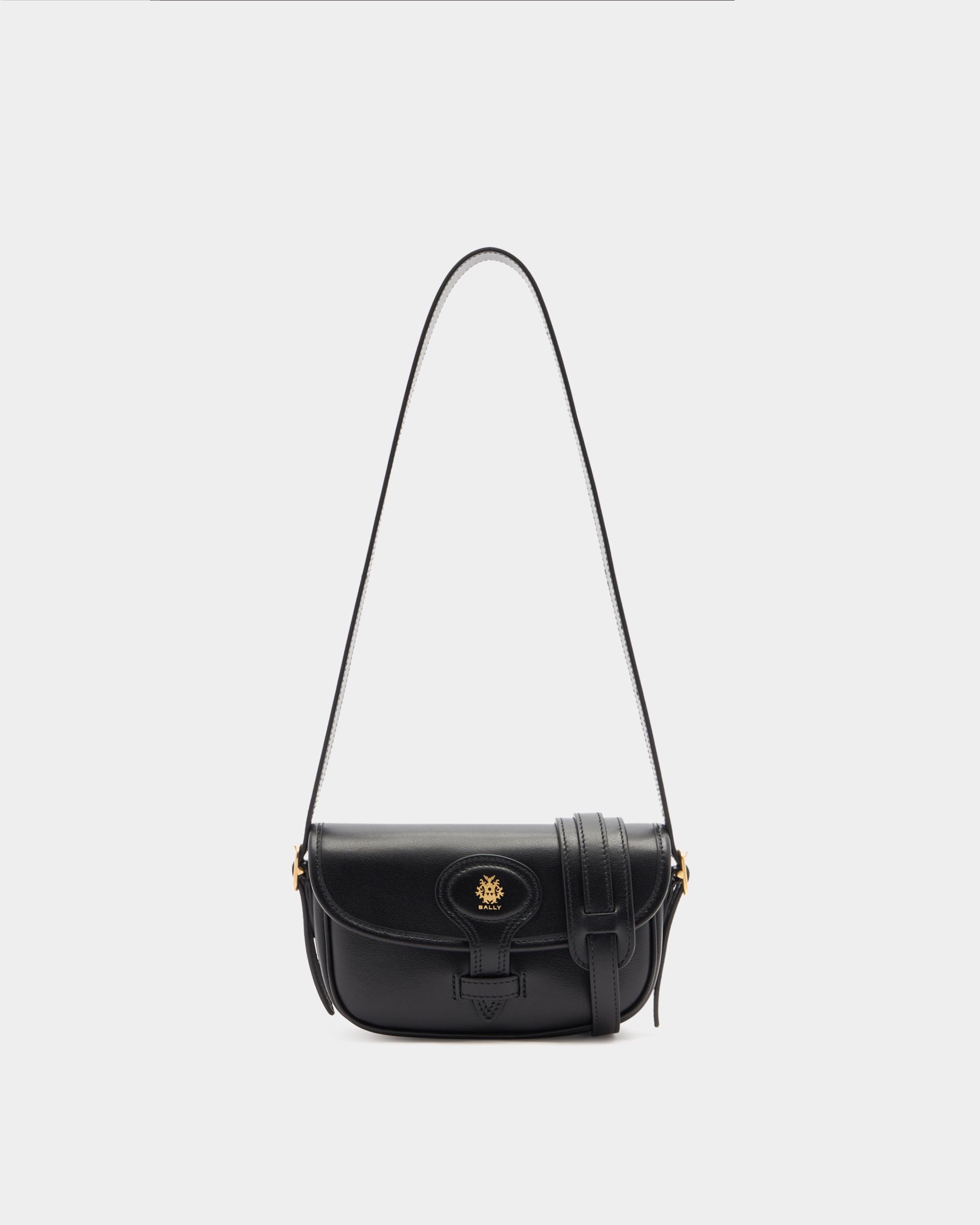 This Beckett minibag in black leather has a compact silhouette embellished by a gold-tone foil Bally Crest on the flap closure. A choice between two straps offers crossbody and shoulder portability.