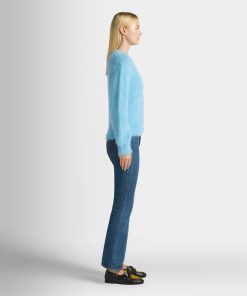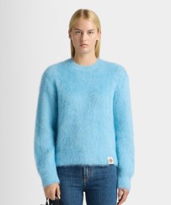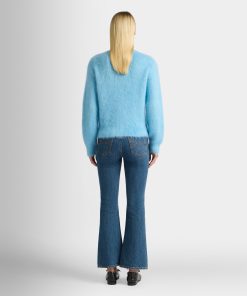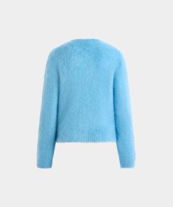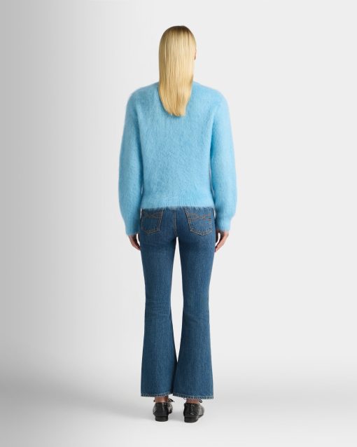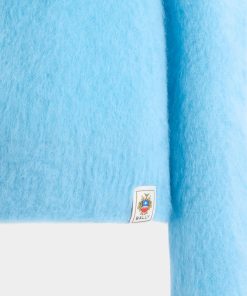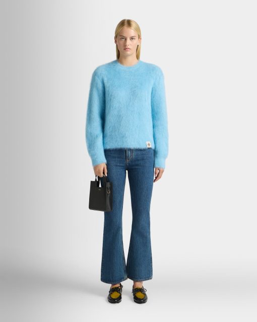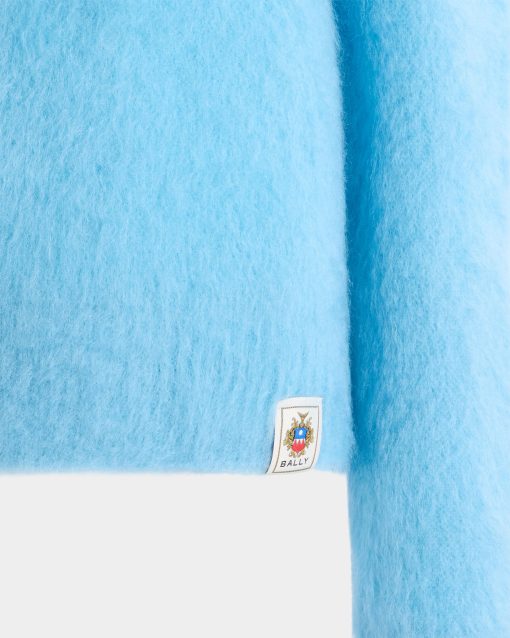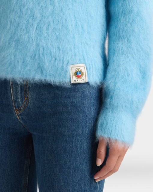 In soft mohair and silk, this light blue crewneck sweater has been brushed for added warmth. A Bally Crest label on the lower hem is a subtle signifier of the brand’s heritage.