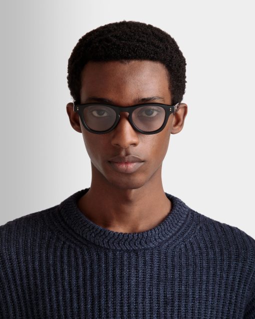 A timeless celebration of essential elegance takes shape in the round frames, keyhole nose bridge and geometric rivets of the Dieter sunglasses. Recognizable yet effortless, they’re seen here in black acetate, complemented by premium photochromic nylon lenses.