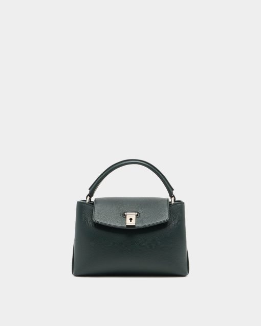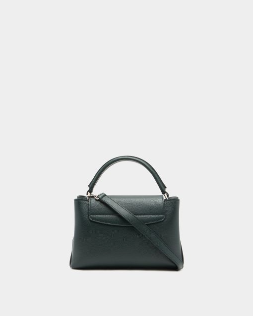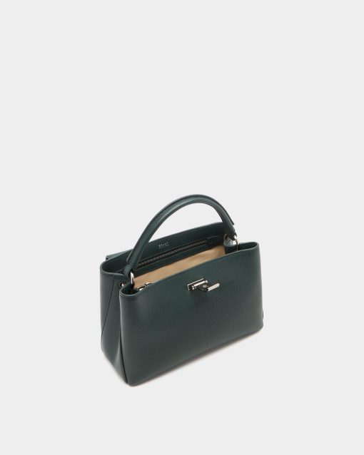 Bally Women’s Lock Me Small Top Handle Bag In Marble Green Grained Leather | Green