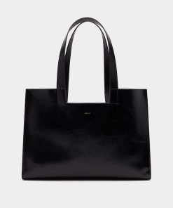Embellished by the iconic Lock Me hardware with an engraved Bally logo, this small top handle bag in grained calfskin is crafted with precision. Its versatile geometric silhouette features a top handle and shoulder strap for multiple carry options.