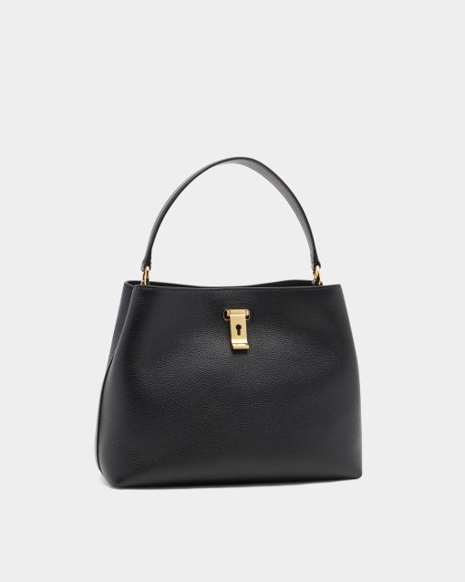Bally Women’s Lock Me Top Handle Bag In Black Grained Leather | Black