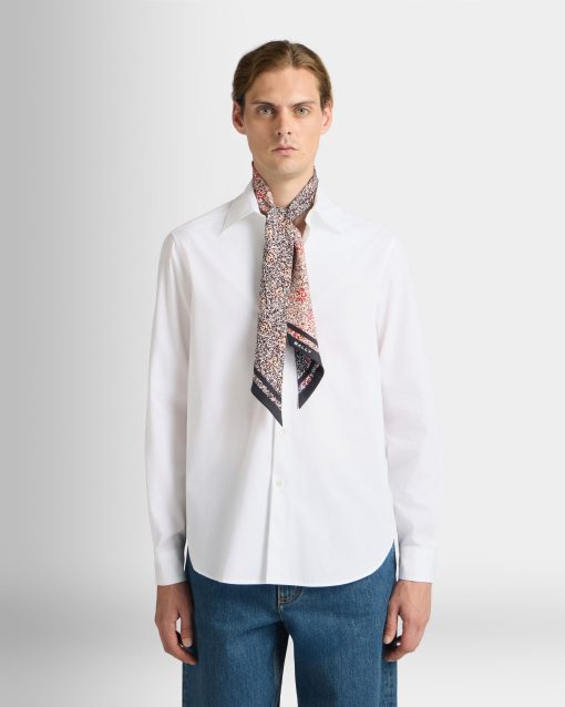 This neck bow in silk twill is decorated with a floral print in two different colorways. The contemporary Bally logo finishes the short sides, set into solid stripes.