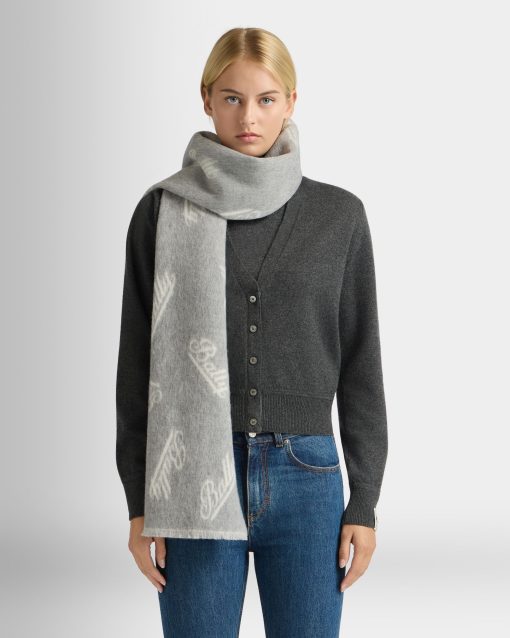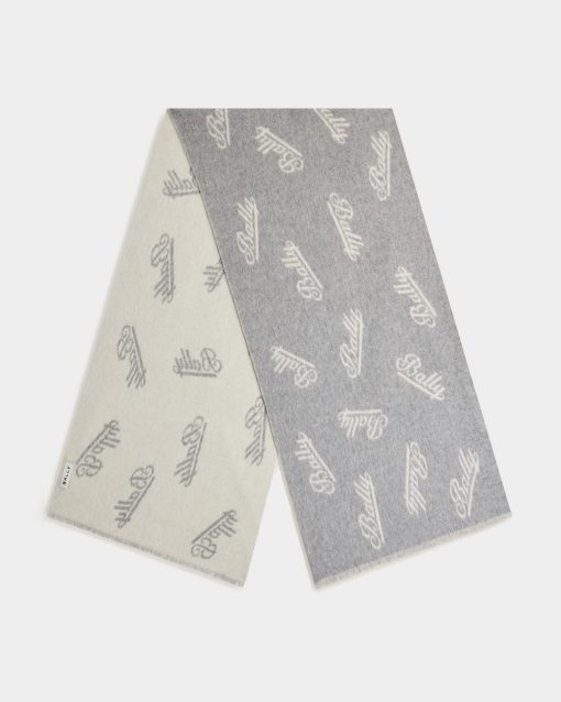 Bally Women’s Scarf With A Logo Motif In Grey And White Wool | Multicolor