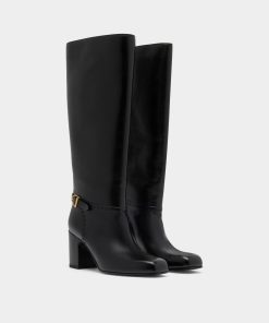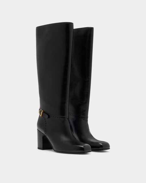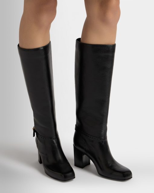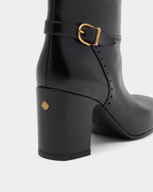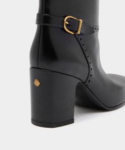 Inspired by an archival design but made for the modern day, this Eclayr boot is crafted in smooth black calfskin with a leather sole. Gold-tone hardware and decorative perforated details add an elegant touch.