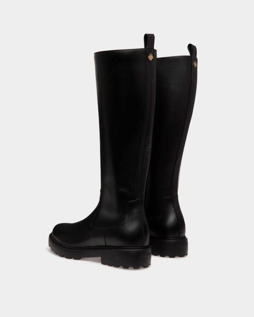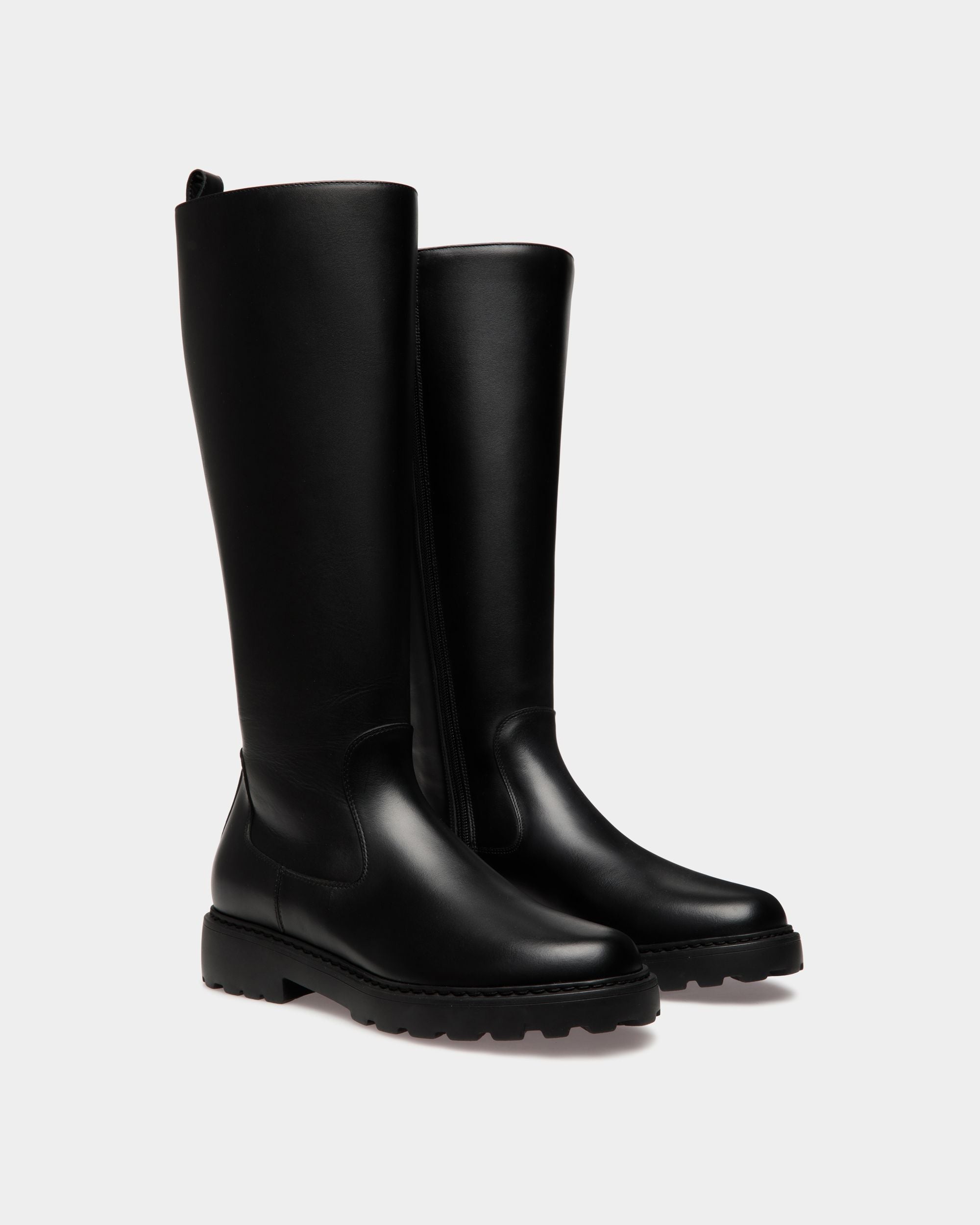 Smart and sophisticated, the Gusto boot is finely crafted from a black leather upper united with a chunky yet lightweight rubber sole. Gold-tone hardware, from the zipper to the Bally Crest, amplifies the refinement of this tall boot.