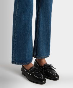 This Plume moccasin brings chic studs to Bally’s interpretation of a classic boat shoe. The upper in smooth black buffalo leather is united with the leather sole via Goodyear Reverse construction for lightness and flexibility.