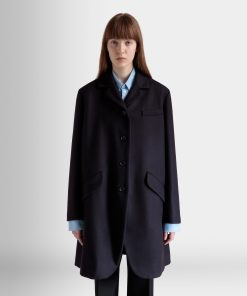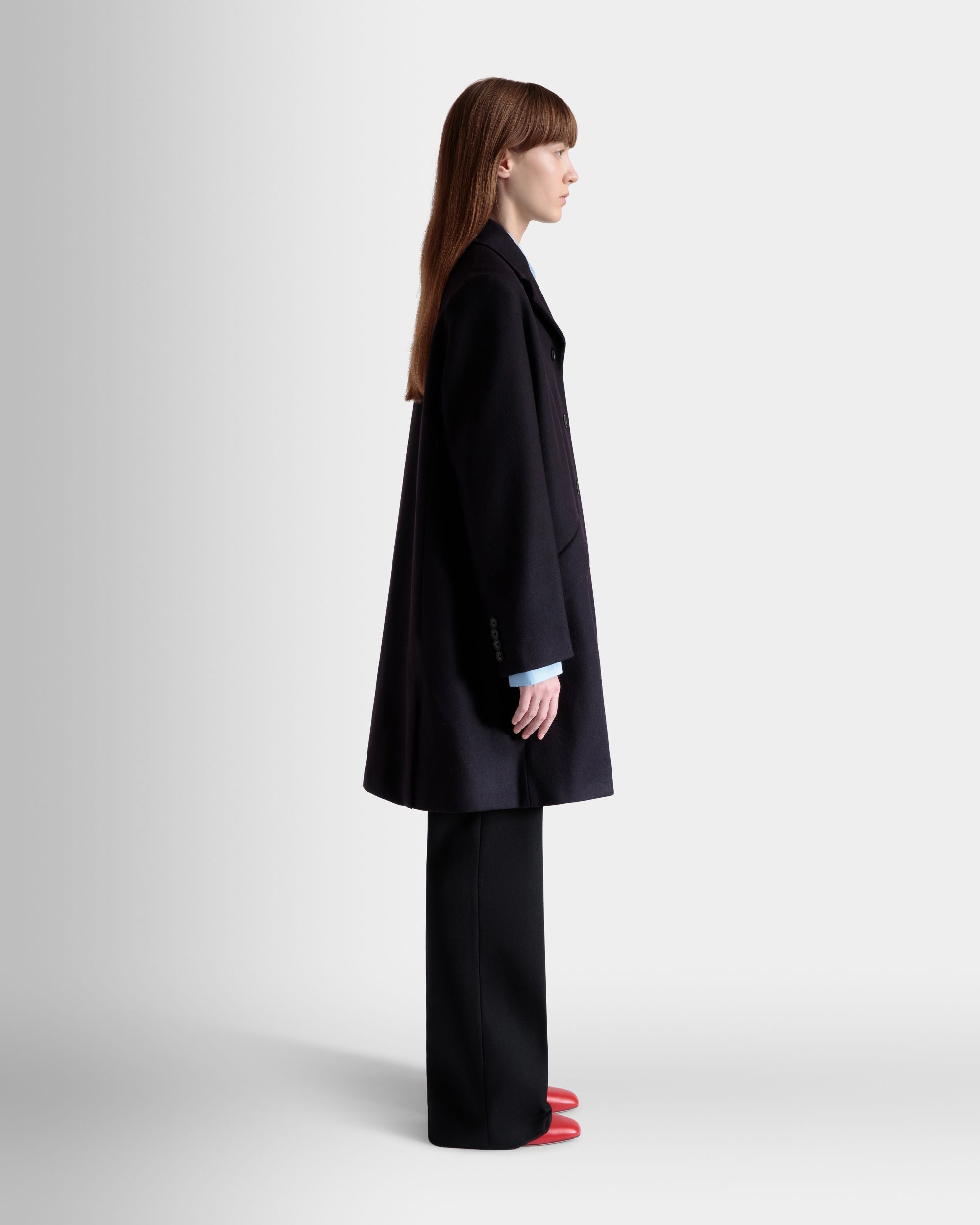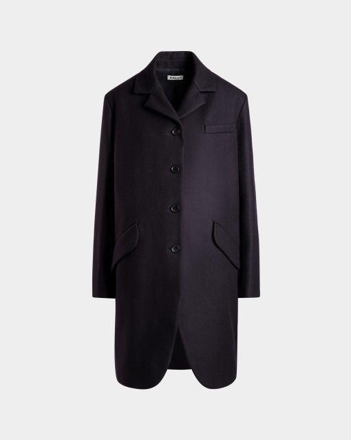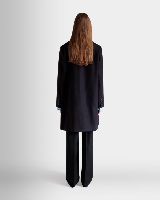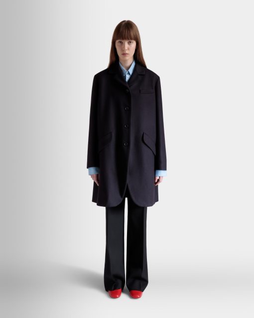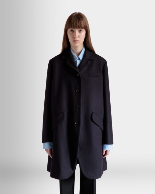 Bally Women’s Single-breasted Midi Coat In A Navy Blue Wool Blend | Blue