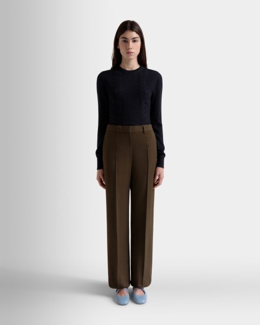 Bally Women’s Straight-leg Pants In Military Green Fluid Gabardine | Green