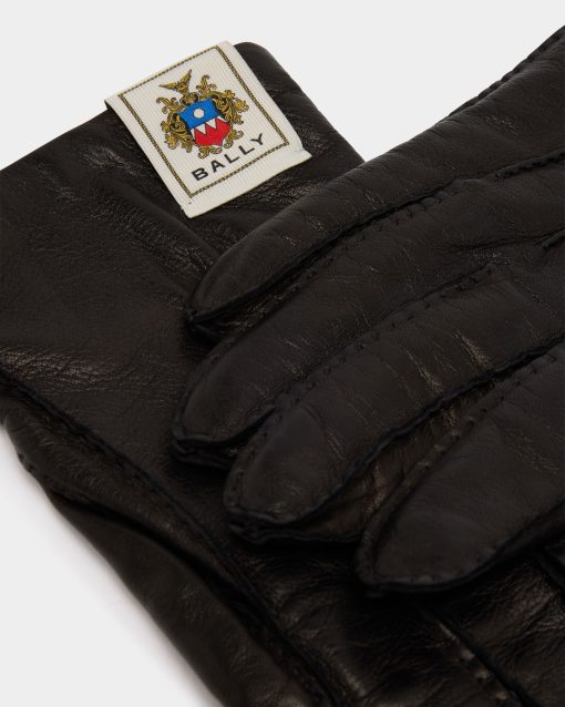 Men’s Gloves In Black Leather With A Bally Crest Label | Black