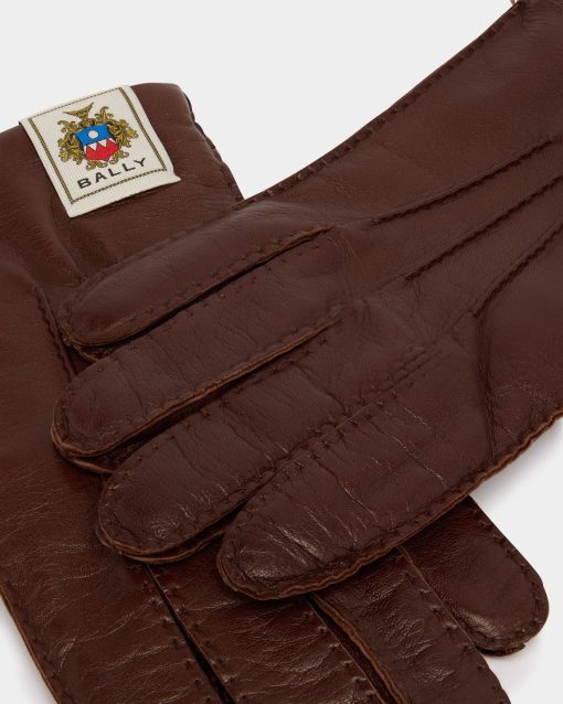 Men’s Gloves In Ebano Leather With A Bally Crest Label | Brown
