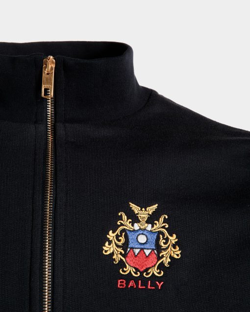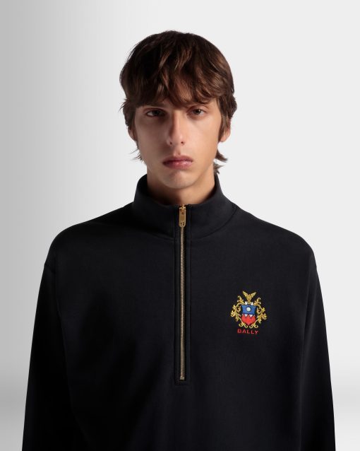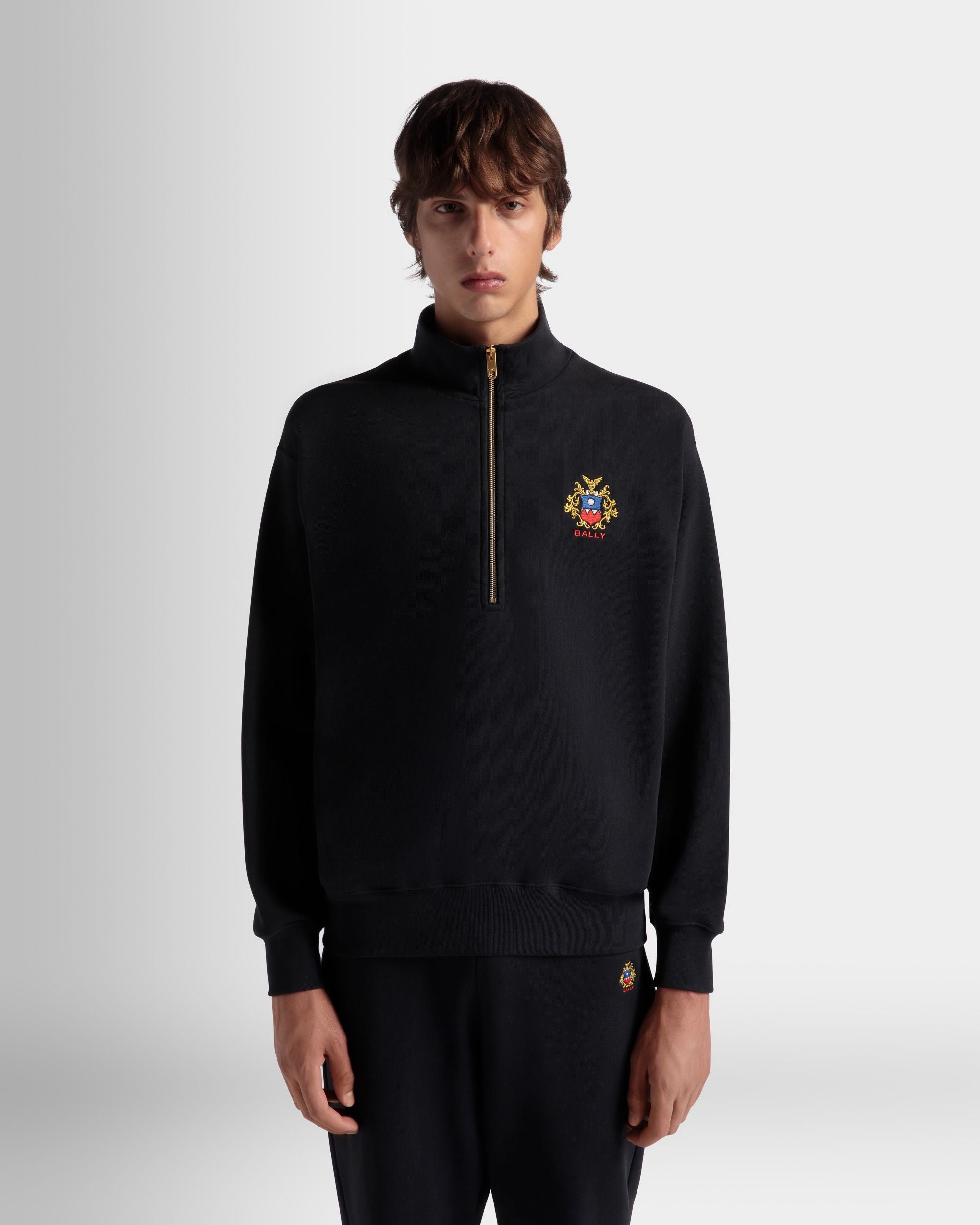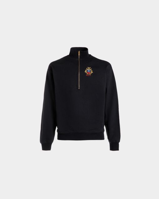 With a half zipper in gold-tone metal to fasten the front, this sweatshirt features a high neck and an embroidered Bally Crest on the left chest.