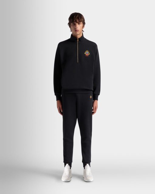 Men’s Half Zip Sweatshirt With A Bally Crest Logo In Navy Blue Cotton | Blue
