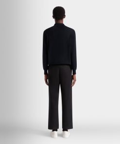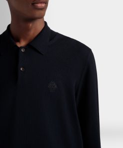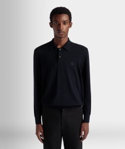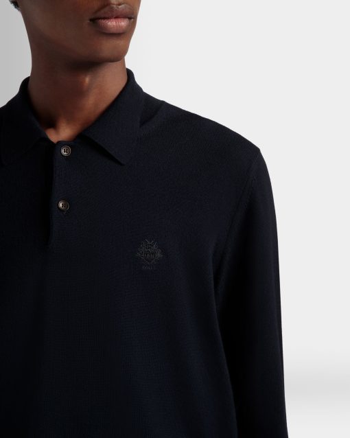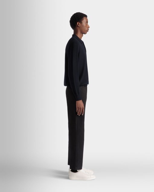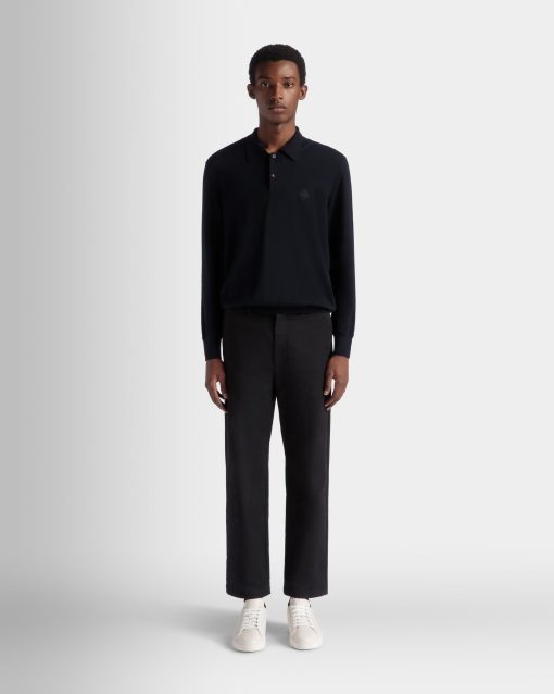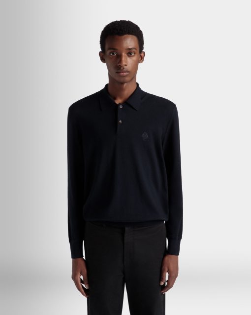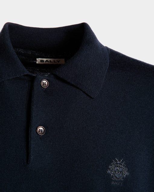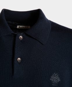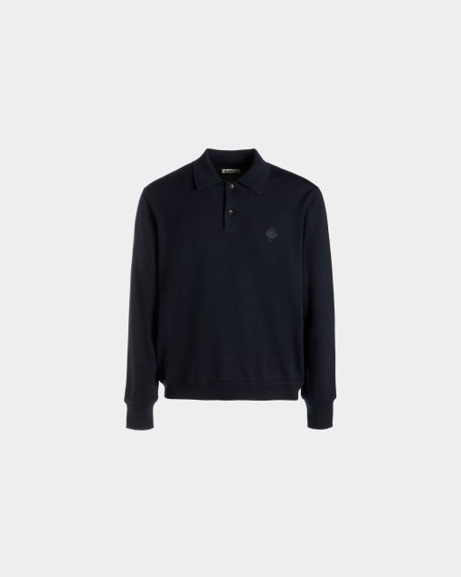 Men’s Long Sleeve Polo With Bally Crest Logo In Navy Blue Wool | Blue