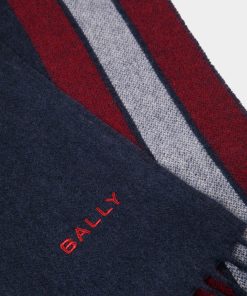Men’s Scarf With Bally Ribbon In A Navy Blue Cashmere Blend | Blue