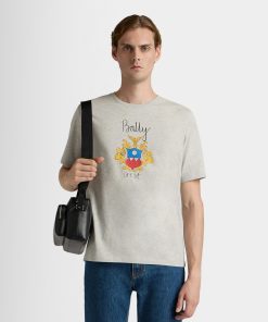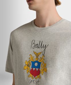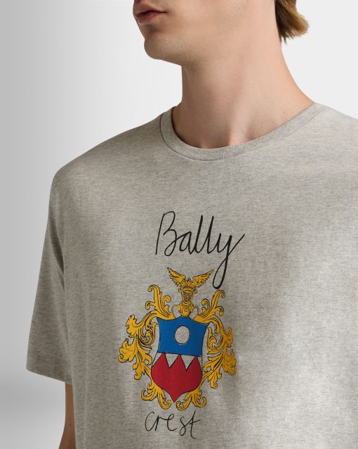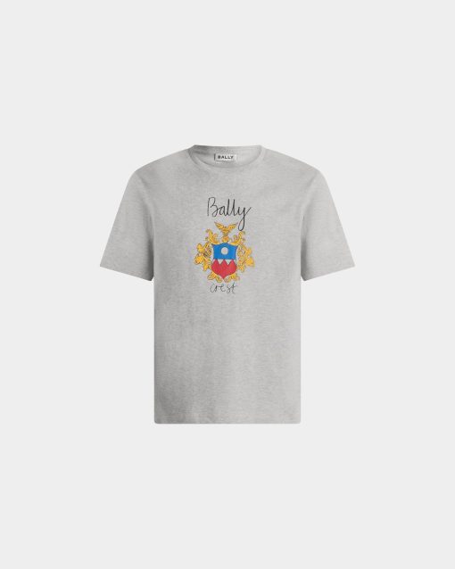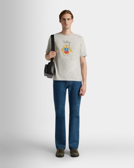 Men’s T-shirt In Mélange Grey Cotton With A Bally Crest | Grey