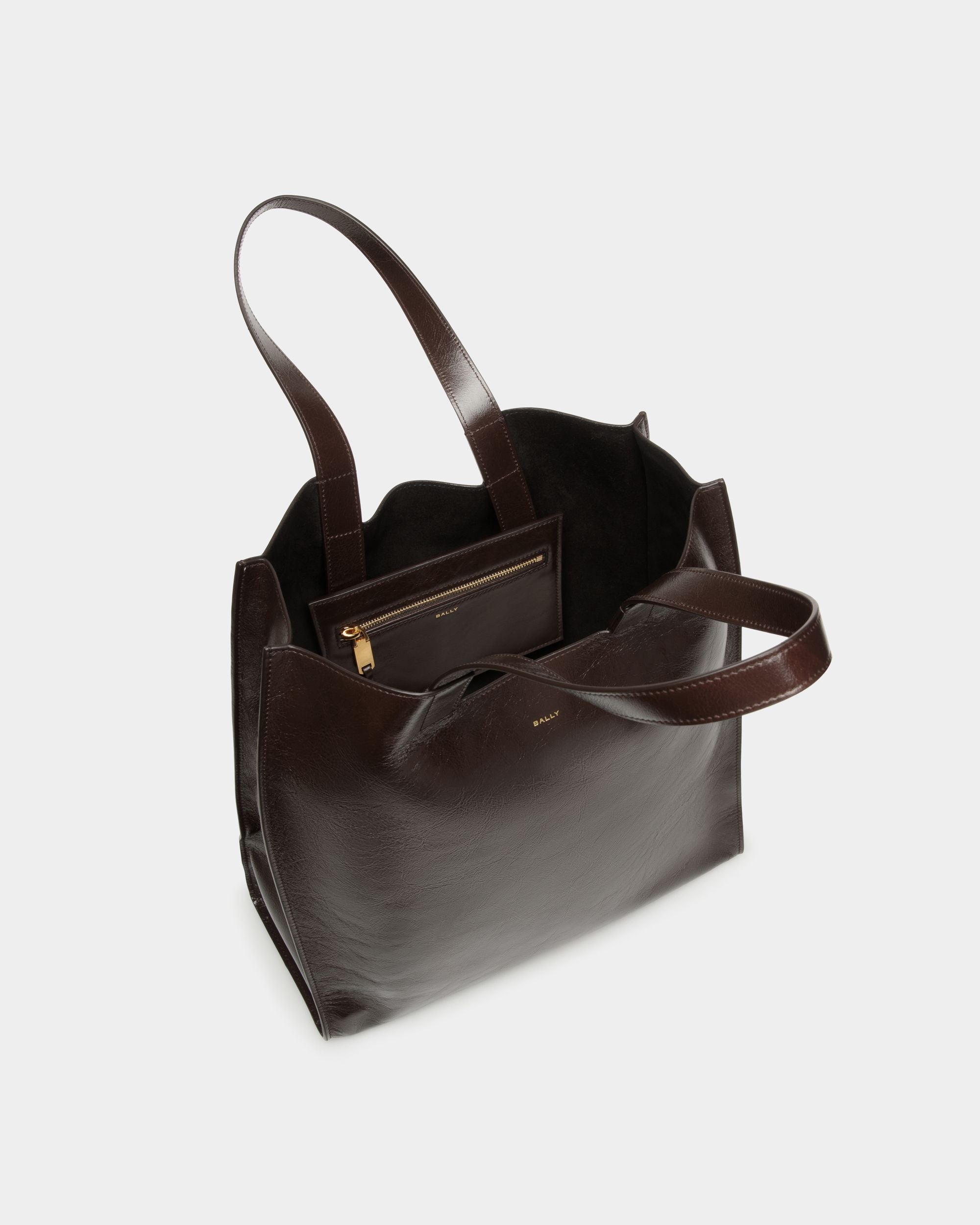 With a geometric silhouette first introduced in the SS24 fashion show collection, this Easy Bally tote in craquelure leather has been given a rich Ebano hue. A small Bally logo in gold-tone foil adds a sophisticated touch.