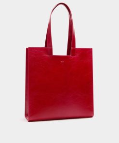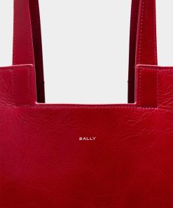 This Easy Bally tote bag is designed into a geometric silhouette in soft leather. A palladium-hue Bally logo decorates the front of this bold red accessory.