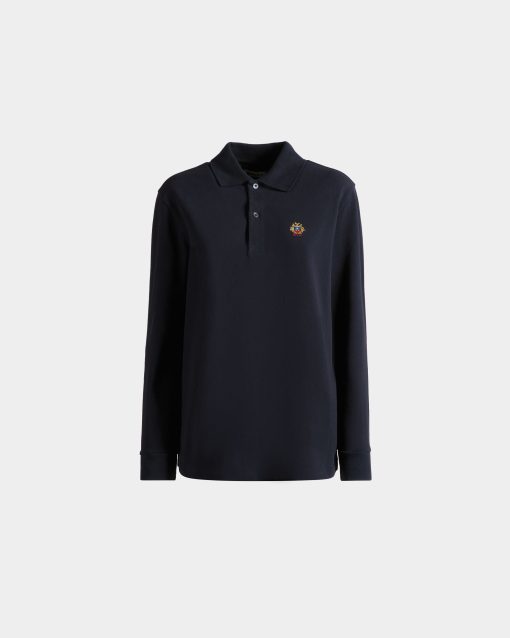 Women’s Long Sleeve Polo With A Bally Crest Logo In Navy Blue Cotton | Blue