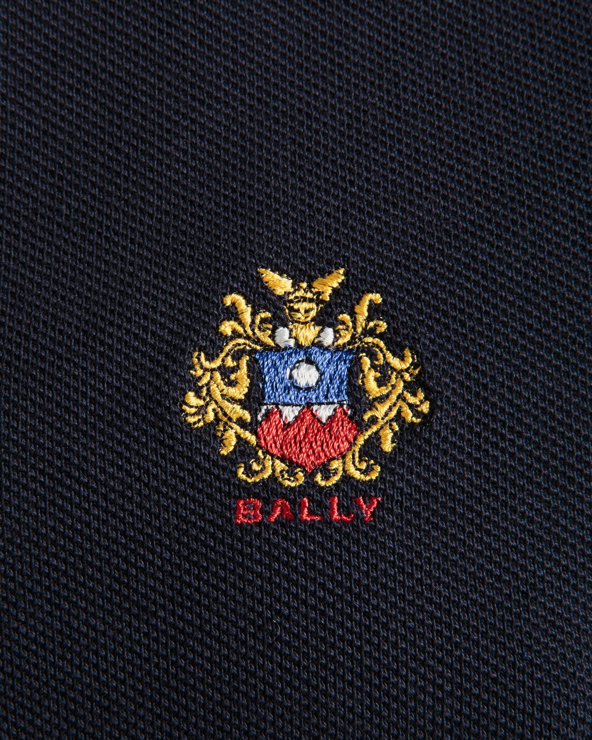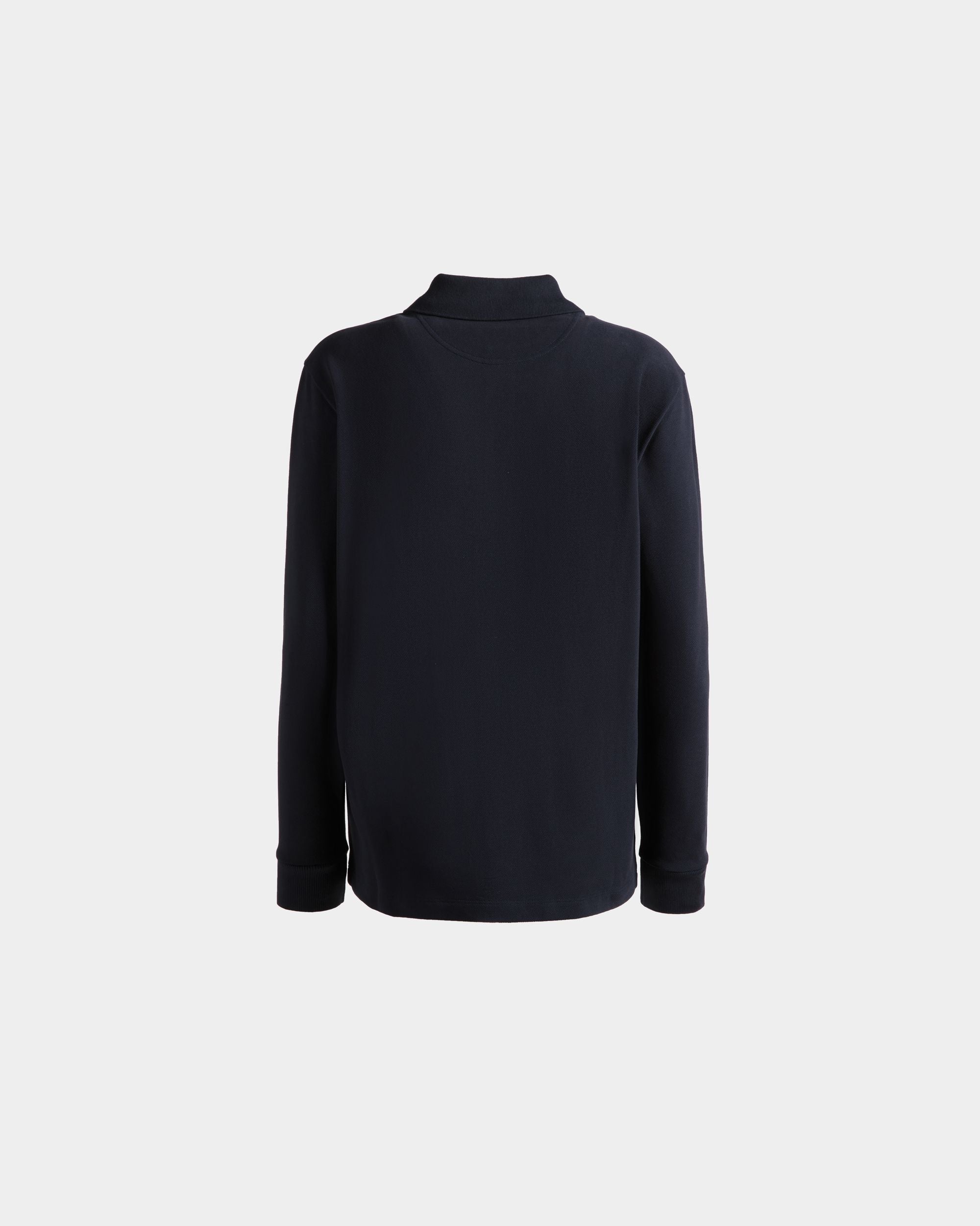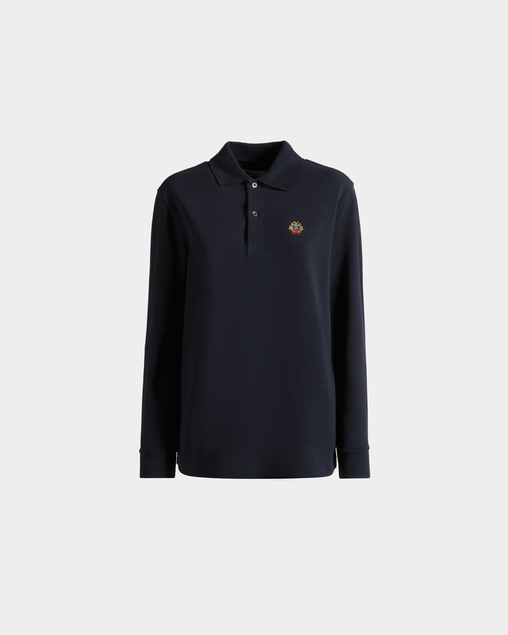 This navy blue long-sleeve polo shirt is constructed in classic pique-knit cotton and embellished by an embroidered Bally Crest.